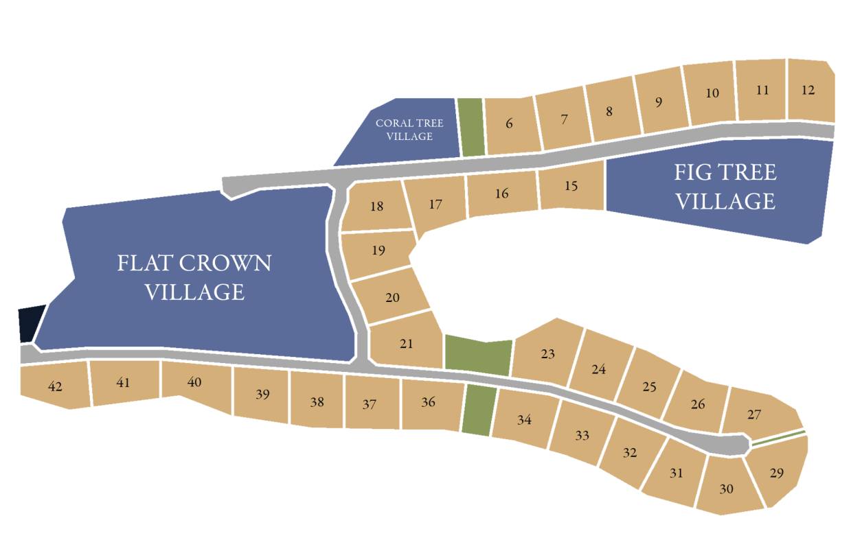 Flat Crown Village Our largest Village Explore Flat Crown Village Fig Tree Village Fig Tree Village comprises of 24 sites. Explore Fig Tree Village Coral Tree Village Coral Tree Village is our smallest Village comprising of 8 units. Explore Coral Tree Village Coral Tree Village From 3000 square metres Legacy Sites Legacy Sites Discover Coral Tree Village Discover Flat Crown Village Discover Fig Tree Village Discover